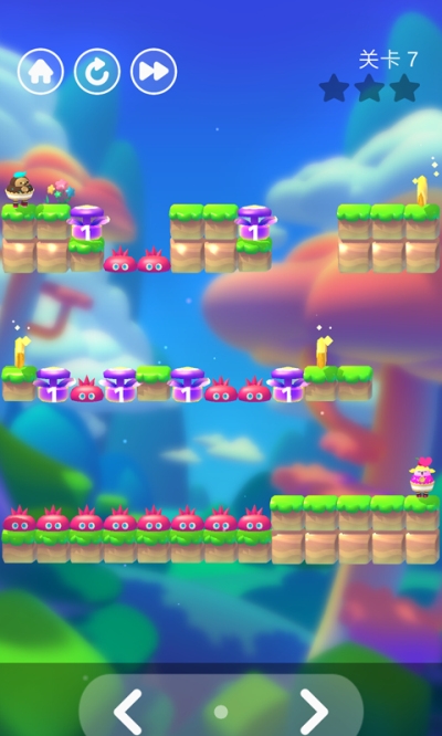 一款非常好玩的闯关游戏,玩家在游戏中操控角色进行闯关,中途收集星星,而且这款游戏非常的q萌,这里是快乐的跳跳王国!每个人都有属于自己的伴侣然而这里四处是淘气的刺刺球,对于跳跳王国的居民来说是致命的,你能否帮助他们避开刺刺球,去心仪的对象身边呢?