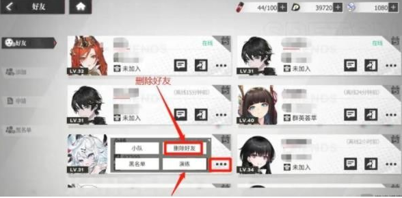 在菜单中会弹出来删除好友,点击之后就能进行删除了。