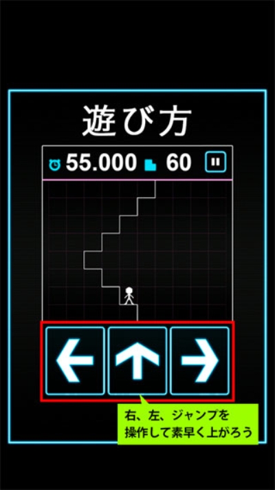 全新的讲究动作敏捷的作品,动作很娴熟的火柴人就是你的主角,它可是特别的牛气的,你就亲自来看看它是有多拽吧。你要用最快的速度控制它快速的爬上楼梯。屏幕上都有特定的按键供你使用,按照要求操作就行了,不是很难,但是要小心一点,别爬楼梯的时候用劲太猛了,就被摔了。