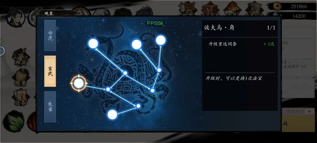 图内可以免费刷新一次选择法宝,观星点出玄武系法宝刷新后可以多一次,是每次升级都能换一次。