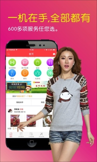 我们提供一个百余种行业达人为您服务的平台,平台上有许多各行各业的技能达人,他们随时在等待为您服务,一分钟约到附近人的上门服务,单身交友,同城交友,闪电约会等,因有尽有,决对真实,放心挑选,有担保交易,可以满足您的各种需求。