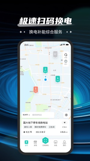 2、点击扫码换电,3步完成换电流程