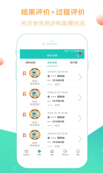 家长,实时获得学生在校动态,有效参与学生成长,协助教师管理班级。