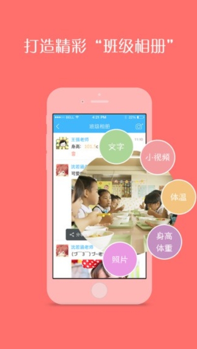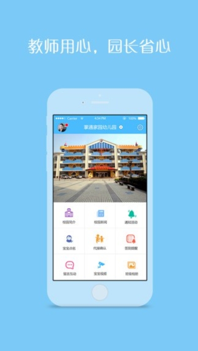掌通家园连接家长和幼儿园,幼儿园可使用掌通家园随时发布最新动态,并通过全方位推送通知到位;教师和宝宝家庭组一对一交流互动,及时深入的沟通宝宝情况;流畅清晰的实时视频监控,让园长同时监测园内所有区域情况,保障园内安全管理;文字、照片、小视频,让教师可创作精彩纷呈的“班级相册”。宝宝入园、离园即刻提醒,加上严谨的宝宝代接流程,保证宝宝的在校安全;更有“用量报告”,供园丁查看宝宝激活数据,家长活跃数据,教师活跃排名等,为园长的管理优化指明方向,有效提升校园竞争力,是打造品牌校园的最佳工具。
