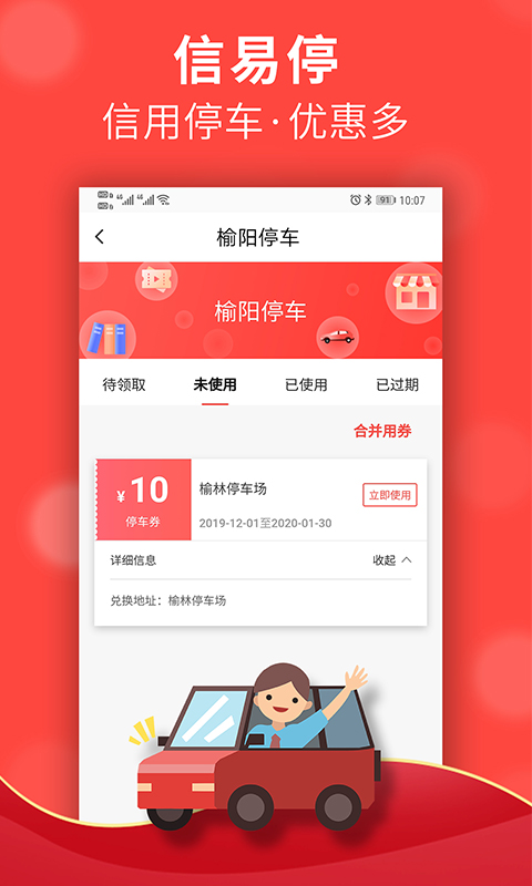 为用户提供了一站式与生活息息相关的各类优惠,以信用分为基准,如领取停车优惠。