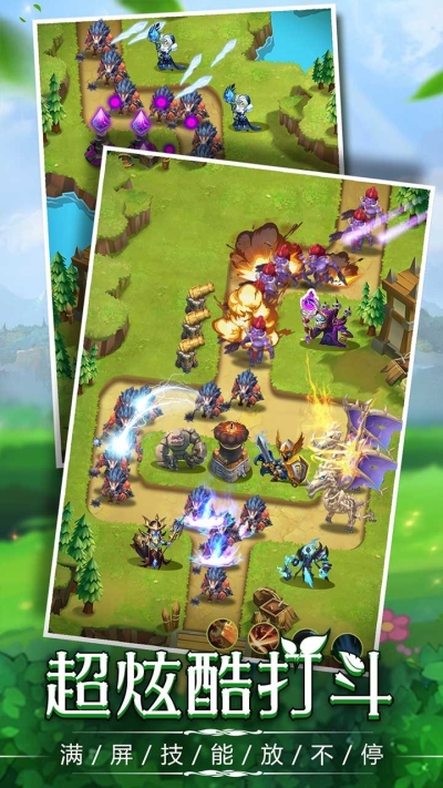 塔防战斗表现如下:主要玩法为普通战役和精英战役,采用英雄上阵防守怪物模式,所有英雄分为四种职业:射手、战士、法师、术士。其中高星级英雄还会在战场中释放技能,对敌人造成大量伤害
