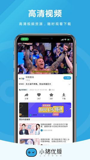 小猪优版覆盖了电影、电视、综艺、少儿、动画等优质短视频内容,为用户提供了丰富的选择。这种多元化的内容布局,满足了不同用户的观看需求,使得用户在平台上能够找到自己喜欢的视频类型。