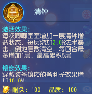同时在使用五行咒时,概率对首目标造成“神伤”效果,对敌方造成减益状态,还能反哺普陀山自身。