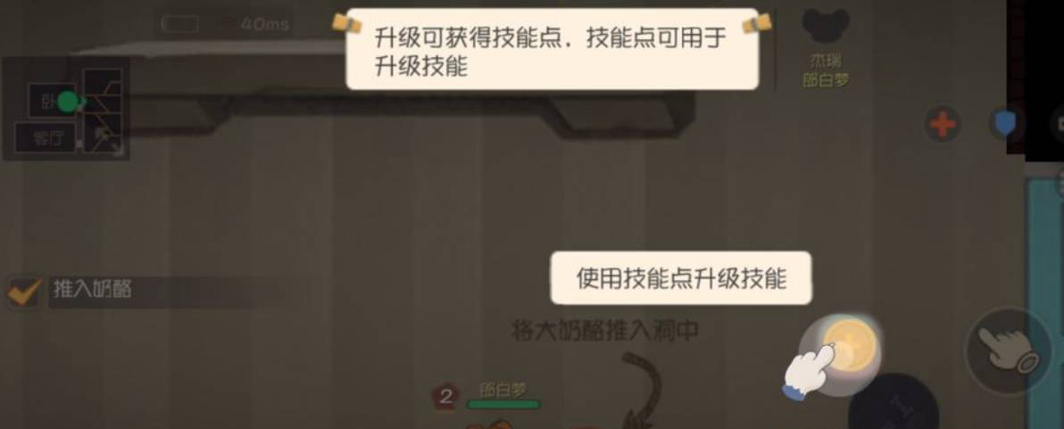 7、推一个奶酪进入洞穴后,提示你升级了,点击右侧的加号,可以获得技能。