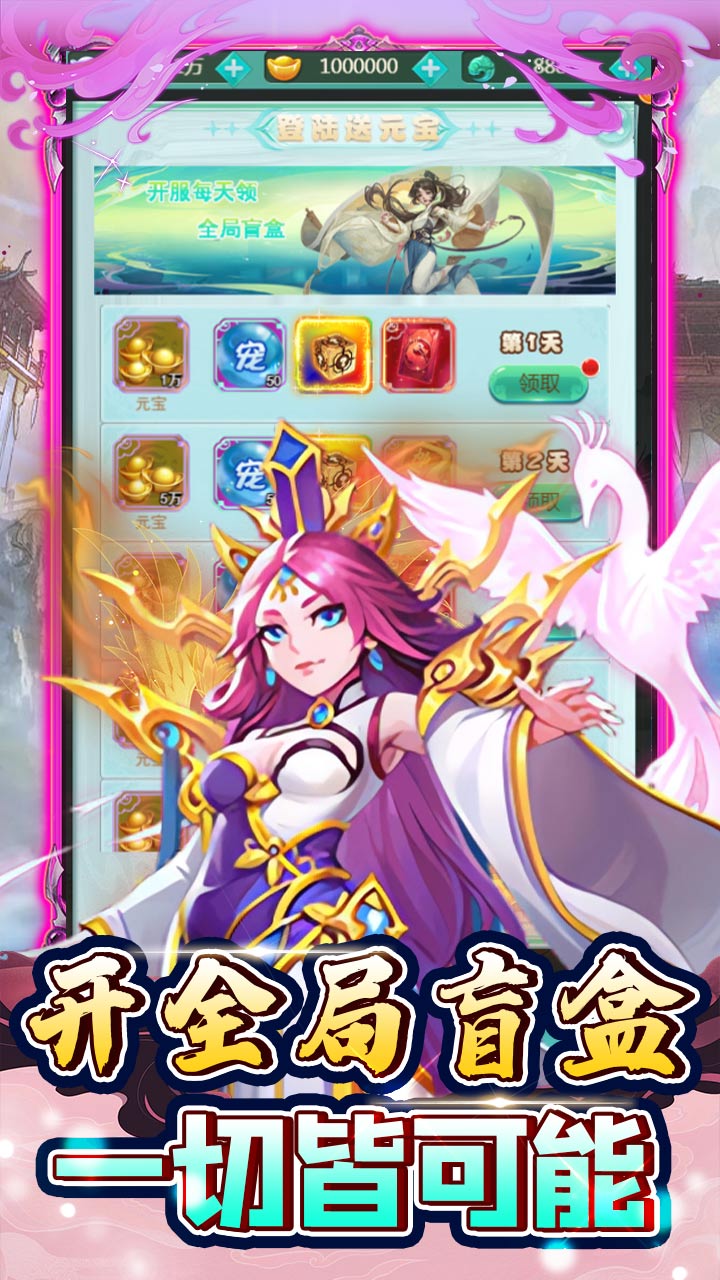 2、从登录第一天起可领取海量元宝,奖励每日不重样,第七日直领SSR无人机