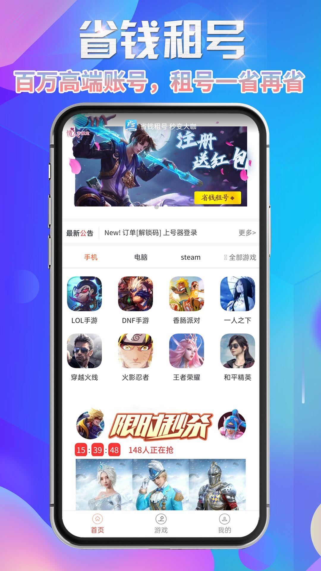 省钱租号内海量游戏账号、影视会员,低至0.1元起租