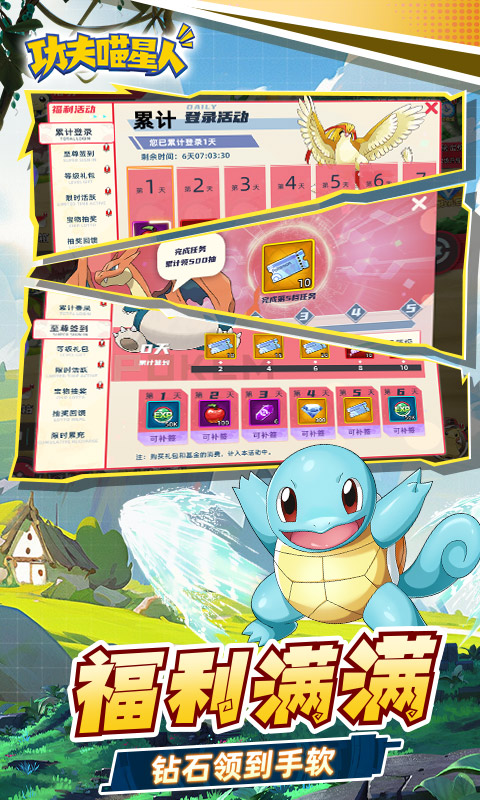 登陆赠送红色小精灵-水箭龟,金币*888k,钻石*10K,精灵经验*8888K