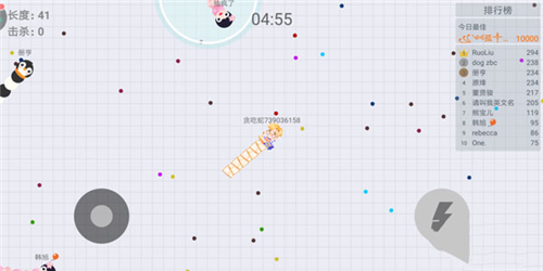 在游戏界面中,玩家的左手操作圈是用来进行移动和改变方位,右手边则是控制加速技能的释放和停止。加速技能的释放会消耗少量小蛇的长度,要注意控制技能的释放。