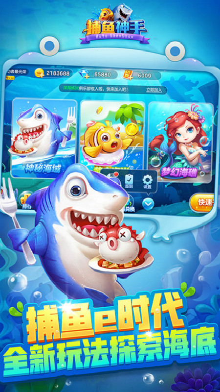 游戏除继承经典街机捕鱼玩法外,另有多种游戏模式满足了不同类型捕鱼用户的需求,操作简便,简单易玩,娱乐性强。绚丽的捕鱼效果、华丽的技能等赋予了游戏更为立体的趣味性和技巧性。上手简单,配合丰富的游戏内容,有着极为刺激的游戏体验。下载游戏安装成功无需注册,一键登录,自动匹配,快速开局。一起来体验深海捕鱼的欢乐刺激氛围吧,挑战全国捕鱼达人