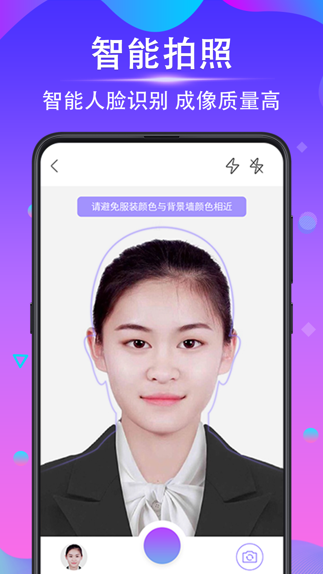 2、用普通手机就能拍摄专业证件照的软件,流程简单,操作方便,智能算法抠图