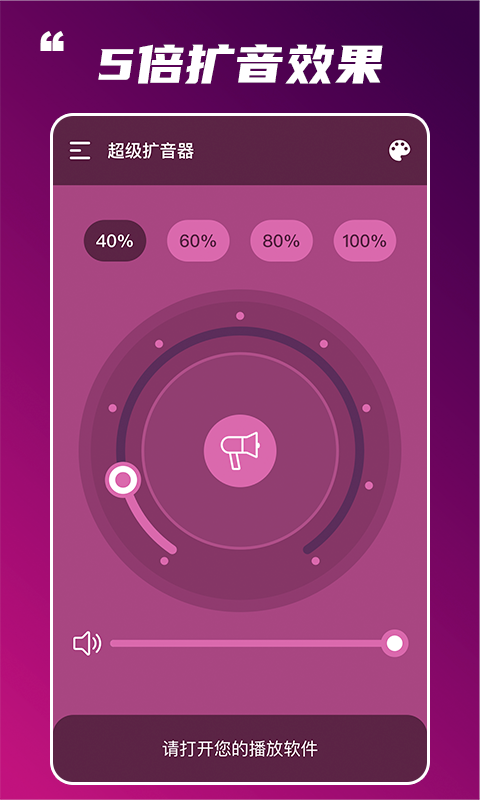 超级扩音器,超级扩音器是一款手机端上的声音信息处理反馈软件,超级扩音器为您带来手机端声音信号处理功能,如果您的手机音量过低(主要是外放音量),那么可以试试这款超级扩音器,可以根据需求来调整扩音效果,在室外,派对,KTV,聚会等场所使用效果更佳