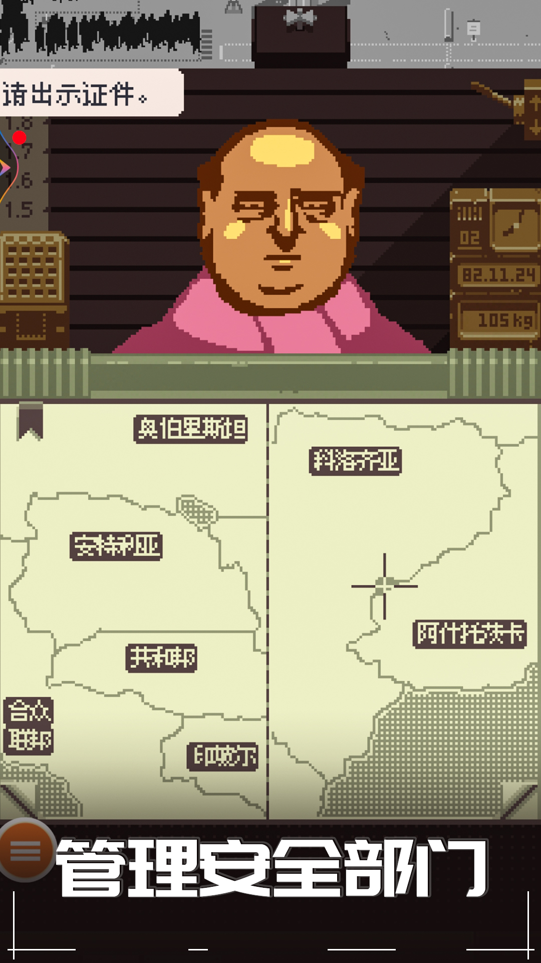 ...是一款紧张刺激的策略冒险手游,玩家将扮演一名边境警察,负责在边境检查站工作,审查来往人员和货物,保护国家安全。
