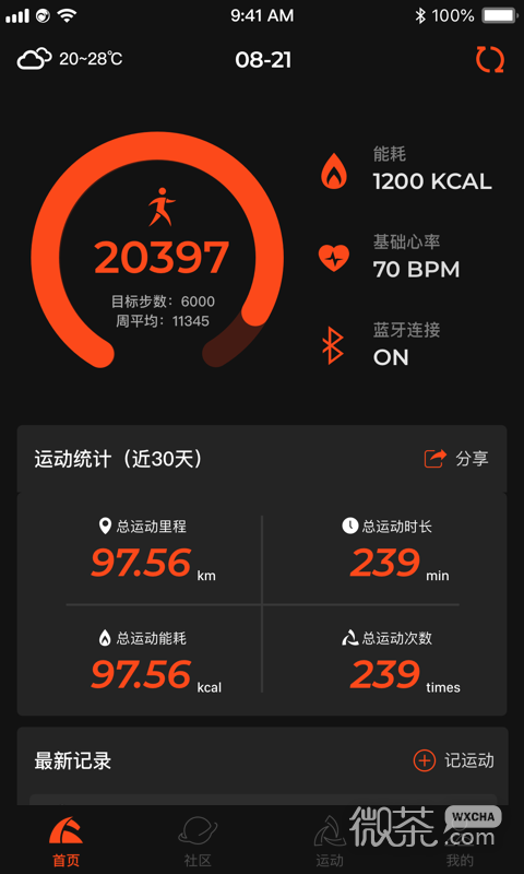 实时记录用户的运动数据,包括运动轨迹、速度、时间、距离等,并支持同步到手机健康数据平台。