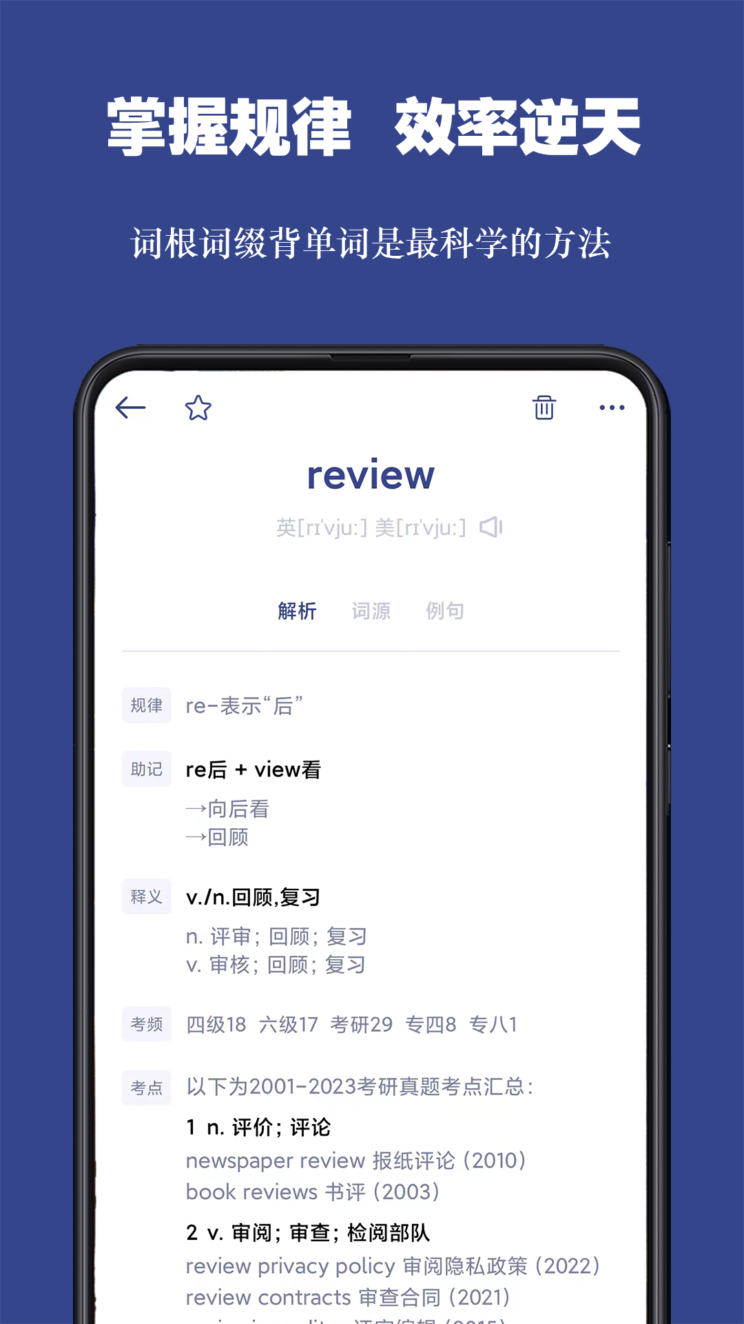 这款词根单词APP不仅仅是简单的背单词,更注重培养用户对于单词前后缀及词根的理解能力,让用户在学习过程中建立起更加深刻的记忆和联想,从而提高学习效率。
