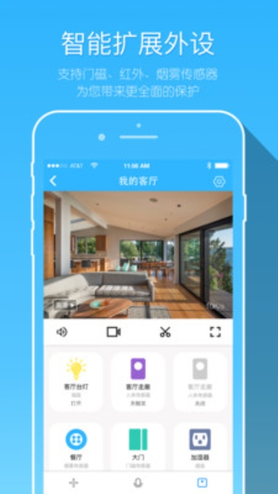 【扩展传感器】支持“门磁”、“红外”、“烟雾”多种扩展外设,更全面的保护您的安全。