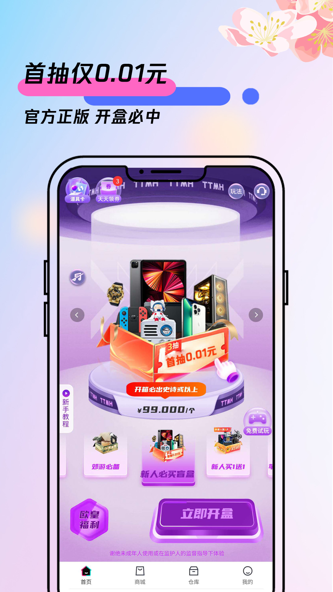天天盲盒下载,一款实用的正品盲盒商城,汇聚更多数码潮玩好物,来天天盲盒随时随地在线抽盲盒,百分百有奖,喜欢就寄出,不喜欢就兑换,欢迎下载