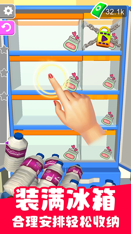 玩家们是可以轻松上手体验的,关卡模式玩法是非常多样的,按照自己的玩法操作方式来进行闯关,将各式各样的物品来进行分类,一一进行规划,将其全部放入冰箱之中,顺利的完成任务要求