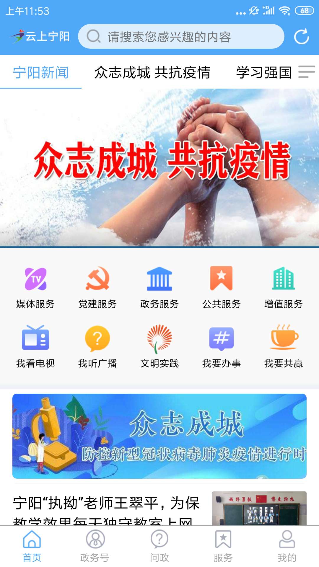 3、云上宁阳”不仅是主流舆论阵地,还是综合服务平台、社区信息枢纽,将为您在线提供医疗、教育、交通、出行等便民服务,让您随时随地“指端问政“指尖办事”,实现“云上宁阳”在手,走遍宁阳不愁目标