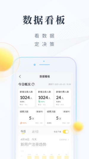 3、数据看板帮助合作中心透过数据了解业务状况,辅助运营决策