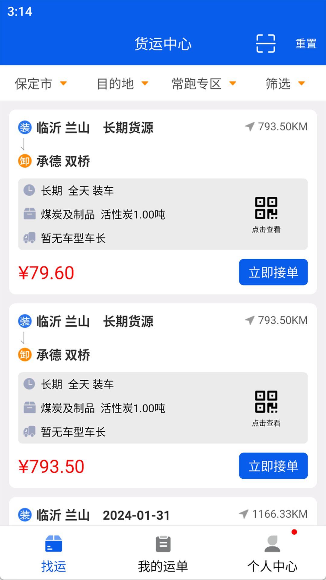 可以接收来自货主的订单,点击接单即可开始运输服务