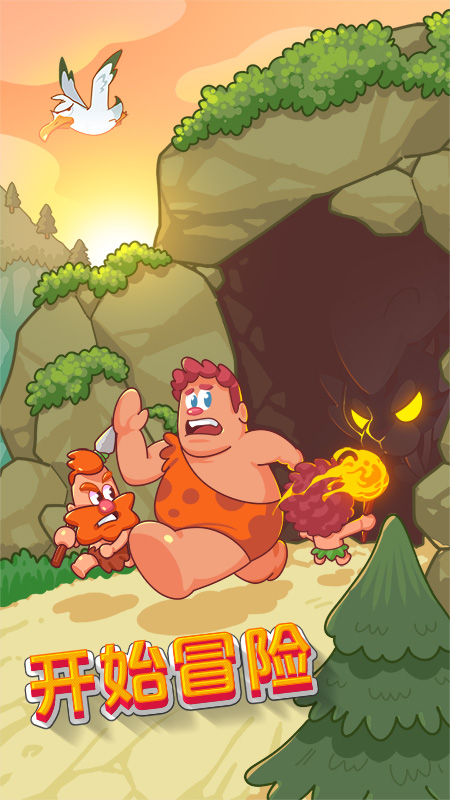 小清新场景画面,精彩的冒险玩法,游戏中,玩家将扮演主角,率领原始人斗野兽,建文明,探索史前世界