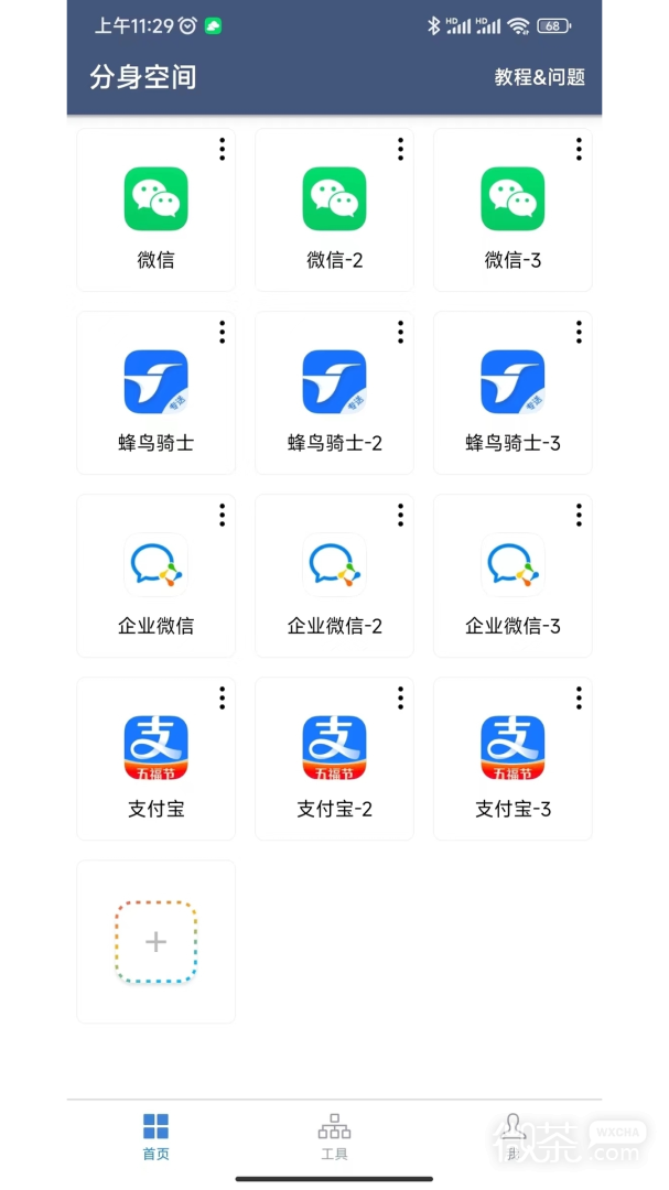 5、可以创建独立的分身,所有分身都可以运行不同的应用
