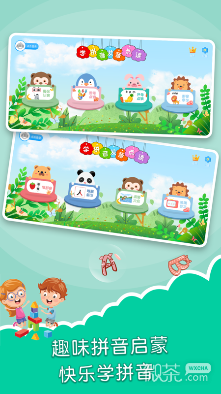 学拼音发音点读操作方便,小朋友们可以自由点击屏幕,与各式各样的课程章节互动,学习丰富的汉语拼音知识,并跟随可爱的卡通角色们一同练习,寓教于乐。app所有内容免费,爸爸妈妈放心