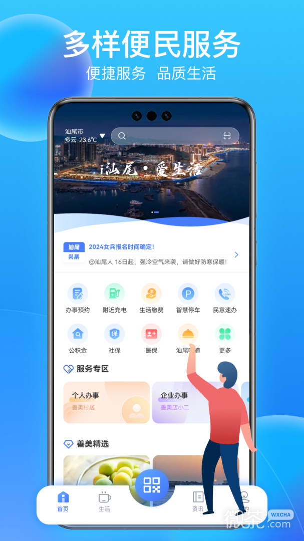 这是汕尾市全面贯彻“四数联动”工作部署,围绕医、食、住、行、政、学六大领域,打造集文旅、政务、出行、资讯于一体的移动服务平台。作为汕尾市政务服务和城市服务的总入口,“i汕尾·爱生活”移动服务平台汇集了超过20项功能场景,为市民提供超过50项服务,同时,也为市民提供本地互动交流平台和资讯获取渠道,让市民体验更加丰富多元、智慧有趣的线上生活服务,助力构筑全民畅享的数字生活。
