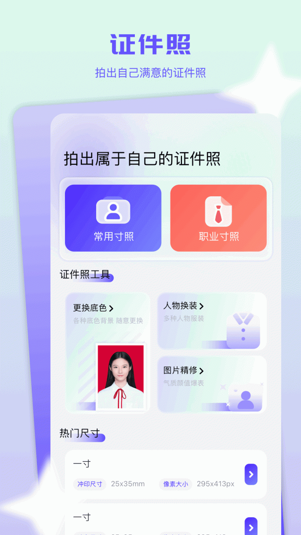 换底色下载,提供给你这款免费的图片处理软件,这款软件支持照片换底,软件操作简单,一键即可使用,功能齐全丰富,支持各类热门尺寸