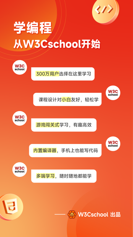 W3Cschool想学编程的朋友,可以从这款app入手哦, 它含有丰富的教学课程,带你学会如何掌控html速记方法,而且还有许多公开的免费课程,随时随地都可在线学习