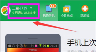 2、接着我们用数据线将手机和电脑连接,如图打开360手机助手后,可以看到手机和电脑已通过USB连接。