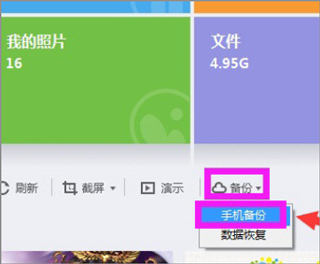 3、然后在我的手机页面,点击此页面下方的“备份”,选择“手机备份”。