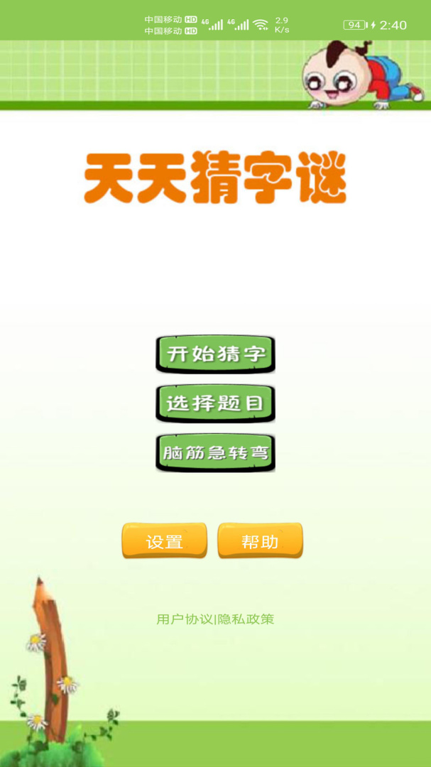 天天猜字谜是一款专为喜爱解密、猜谜游戏的用户设计的手机app,在这个应用中,用户可以挑战各种不同难度级别的字谜和脑筋急转弯题目,锻炼逻辑思维和语言能力,除了丰富多彩的谜题之外,天天猜字谜还提供提示和答案功能,确保用户在遇到困难时能够及时得到帮助,用户还可以邀请好友一起玩游戏,增加互动乐趣。