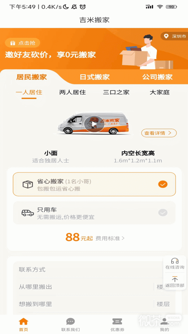 用户可以通过吉米搬家官方网站或App,选择搬家日期、起点和目的地等信息进行在线预约。