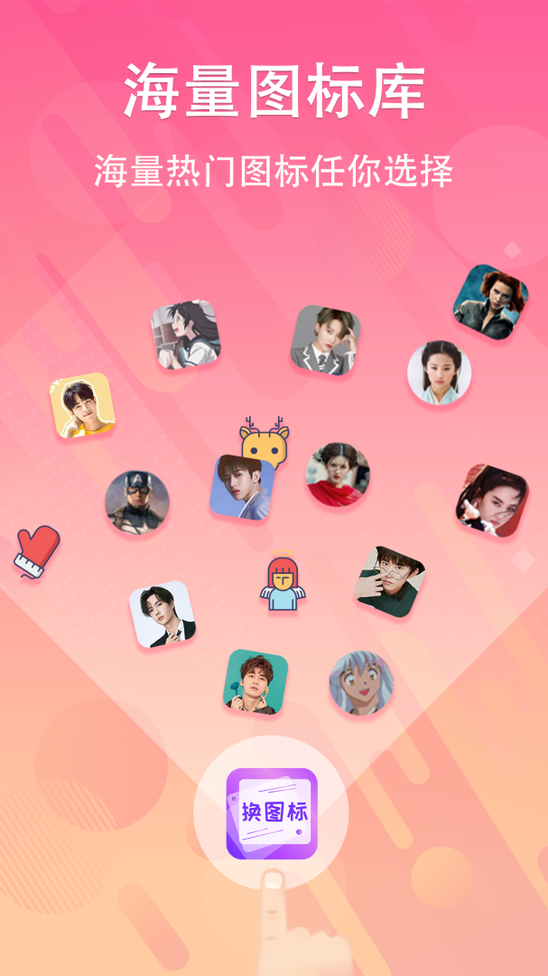 一键换图标,便捷的手机图标更换软件,能够自定义手机应用的图标、名称,使用简单,设置轻松,还有大量炫酷壁纸以及丰富的图标,轻松美化你的手机,让你的手机更有个性