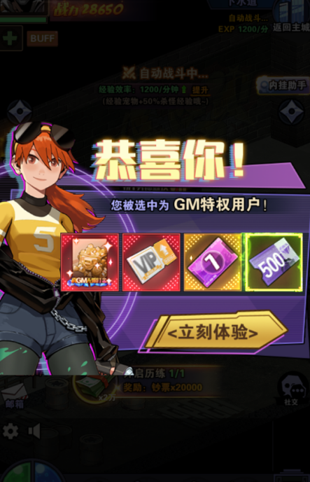 1、进入游戏,先把创角礼包里的500元充值卡和vip直升领了,进游戏后直接使用就能满级vip10了。