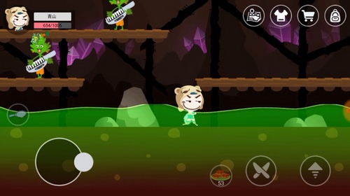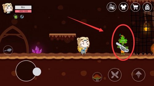6、进入洞口后向右走打败香菜boss。通过悬浮台阶上下跳跃可以躲避香菜boss攻击,同时使用背包里各种菜肴buff加成,或者直接用饭团炸弹轰炸,就能打败香菜boss。打败香菜boss能获得麻辣香菜冰淇淋食谱,通过食谱我们可以制作麻辣香菜冰淇淋。
