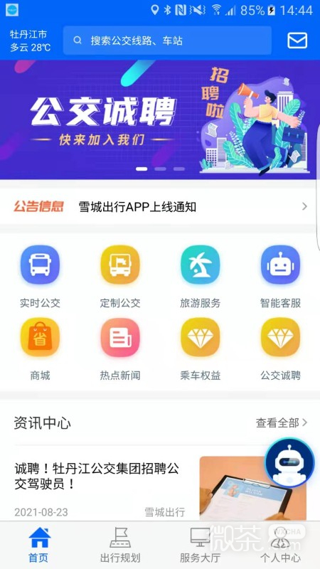“雪城出行”是由易通创新科技专为牡丹江市公交集团设计的免费公交信息服务软件。它集实时公交查询、站点查询和定制公交等多种功能于一体,为您提供全方位的公共交通出行服务。无论您是想了解公交车的实时位置,查找最近的公交站点,还是定制个性化的出行路线,“雪城出行”都能满足您的需求。它是您绿色出行、便捷出行的得力助手,让您的每一次出行都更加高效、环保。