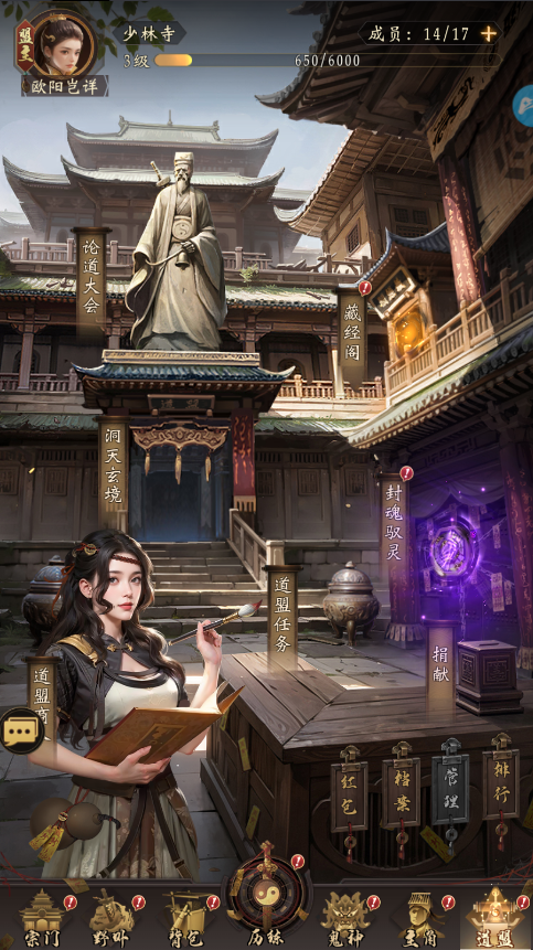 道盟主界面,创建/加入道盟后,可看见各个板块系统。