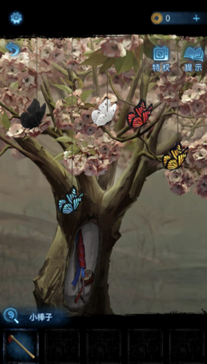 2、在草丛中搜寻找到纸伞,再点击花丛处的蝴蝶获得玉蝴蝶,将玉蝴蝶放在碑上。