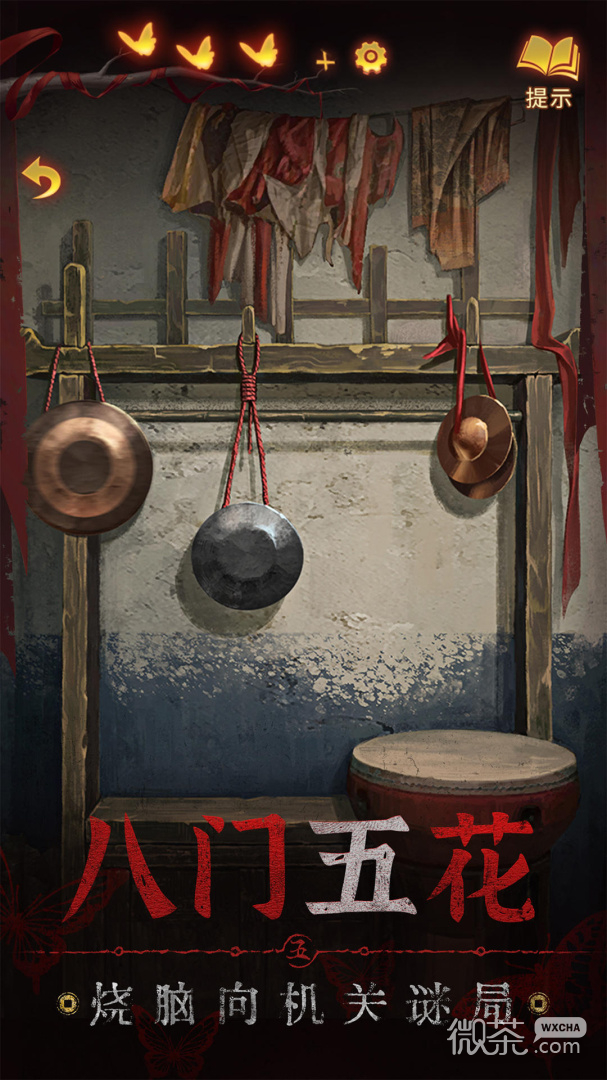 12、点木偶台,根据木偶的颜色和位置移动戏台树上的蝴蝶,完成后可以获得靠旗和波浪鼓。