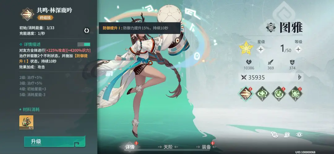 推荐配队:适用于任何缺少奶妈的队伍,且图雅满破后提供全体驱散1个不利状态的效果。