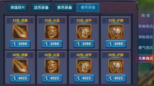 注意:此处购买装备,是完全随机哦。例如,点击购买35级橙色武器,会从坦克、输出、辅助三个职业分类中随机挑选一件35级橙色武器购买成功,而不是固定某一件装备。