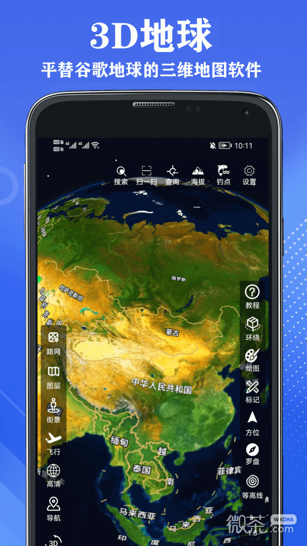 除了基本的地图浏览功能外,3D地球还提供了多种实用工具,如电子罗盘、海拔测量等,这些功能在户外活动中非常实用,极大地提升了用户体验。