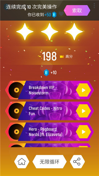 玩家可以自由选择喜爱的音乐进行挑战,排行榜系统还可以展示全球各地玩家的得分和成绩,让玩家可以与其他人比拼技术,也可以通过不断挑战提高自己的技巧。